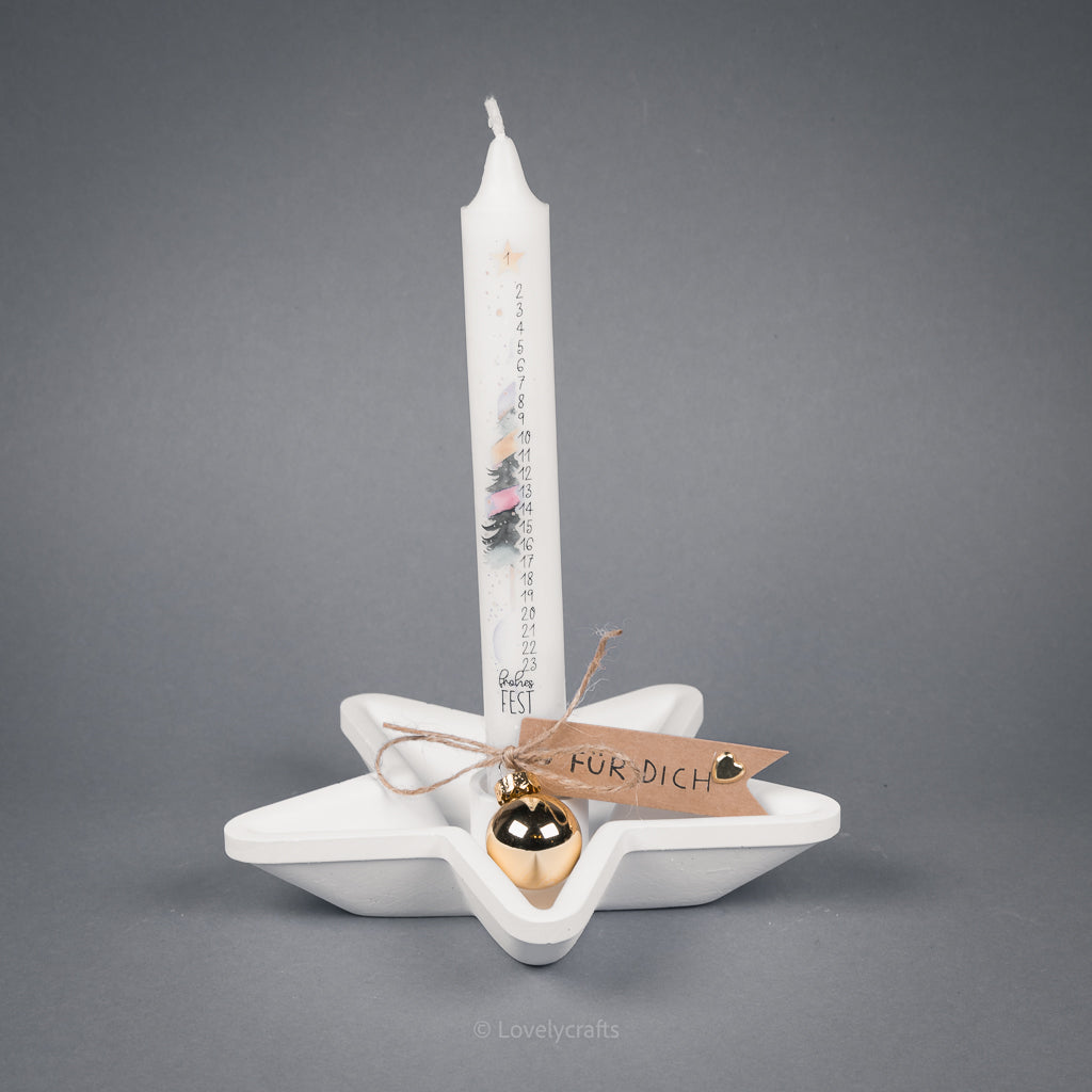 Gegossener Sternkerzenhalter mit Kerzen "Adventscountdown"