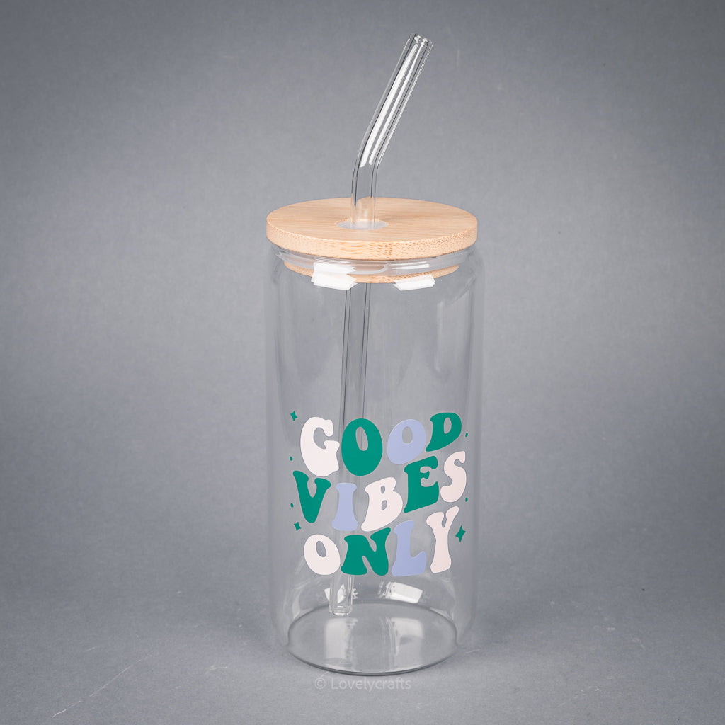 Trinkglas „Good vibes only“ mit Deckel und Strohhalm 🎀