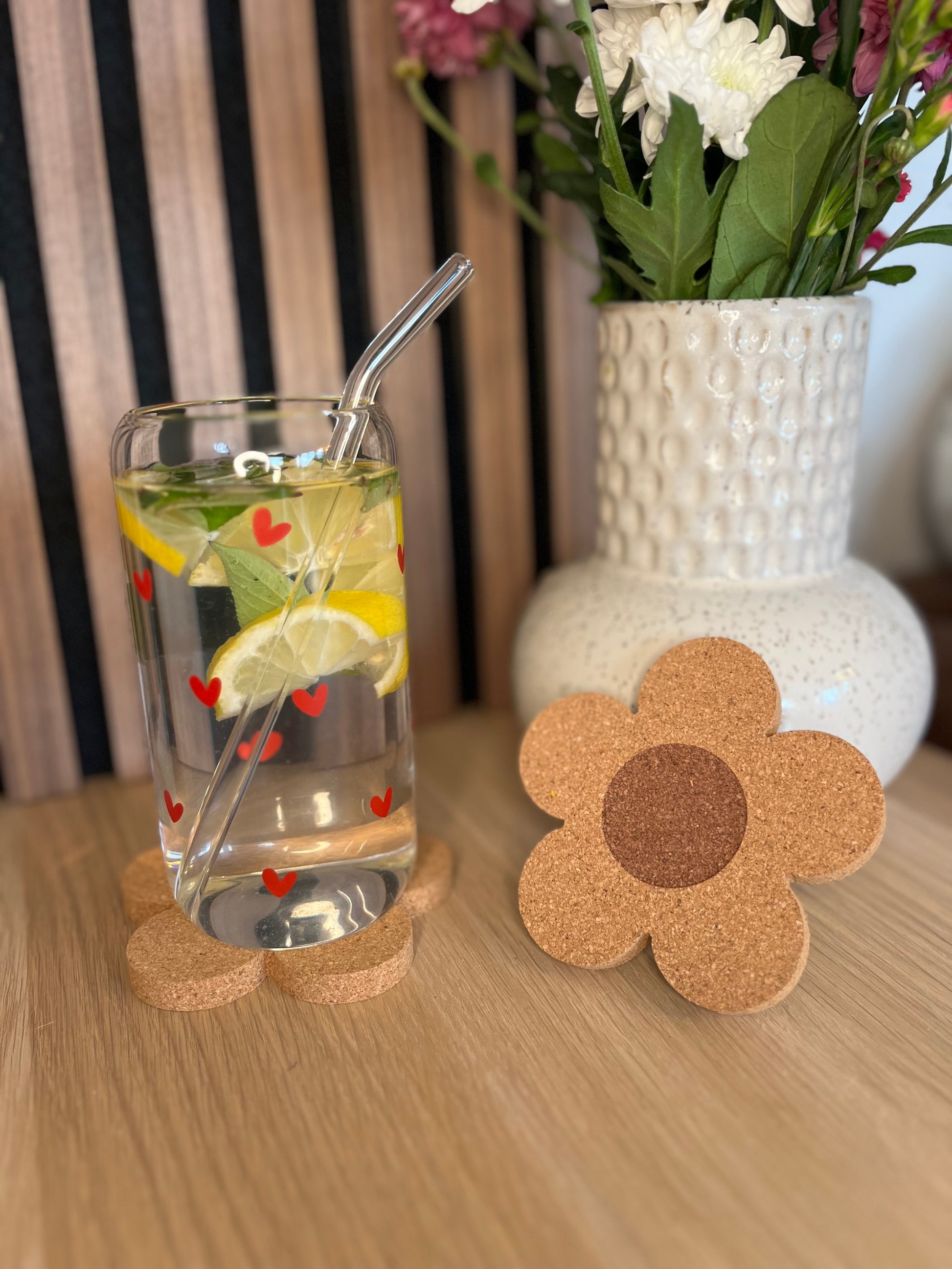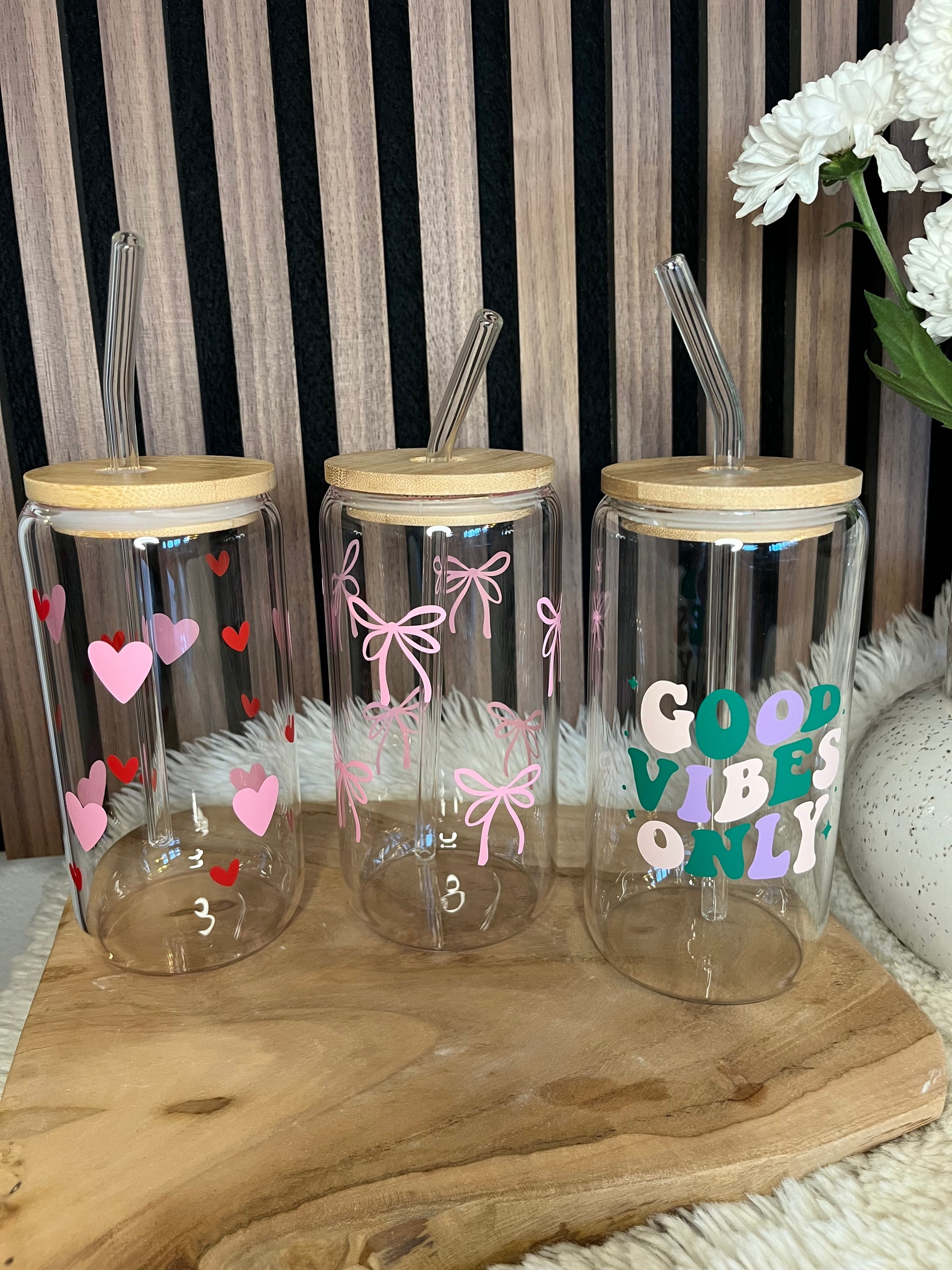 Trinkglas „Herzen“ mit Deckel und Strohhalm 🎀