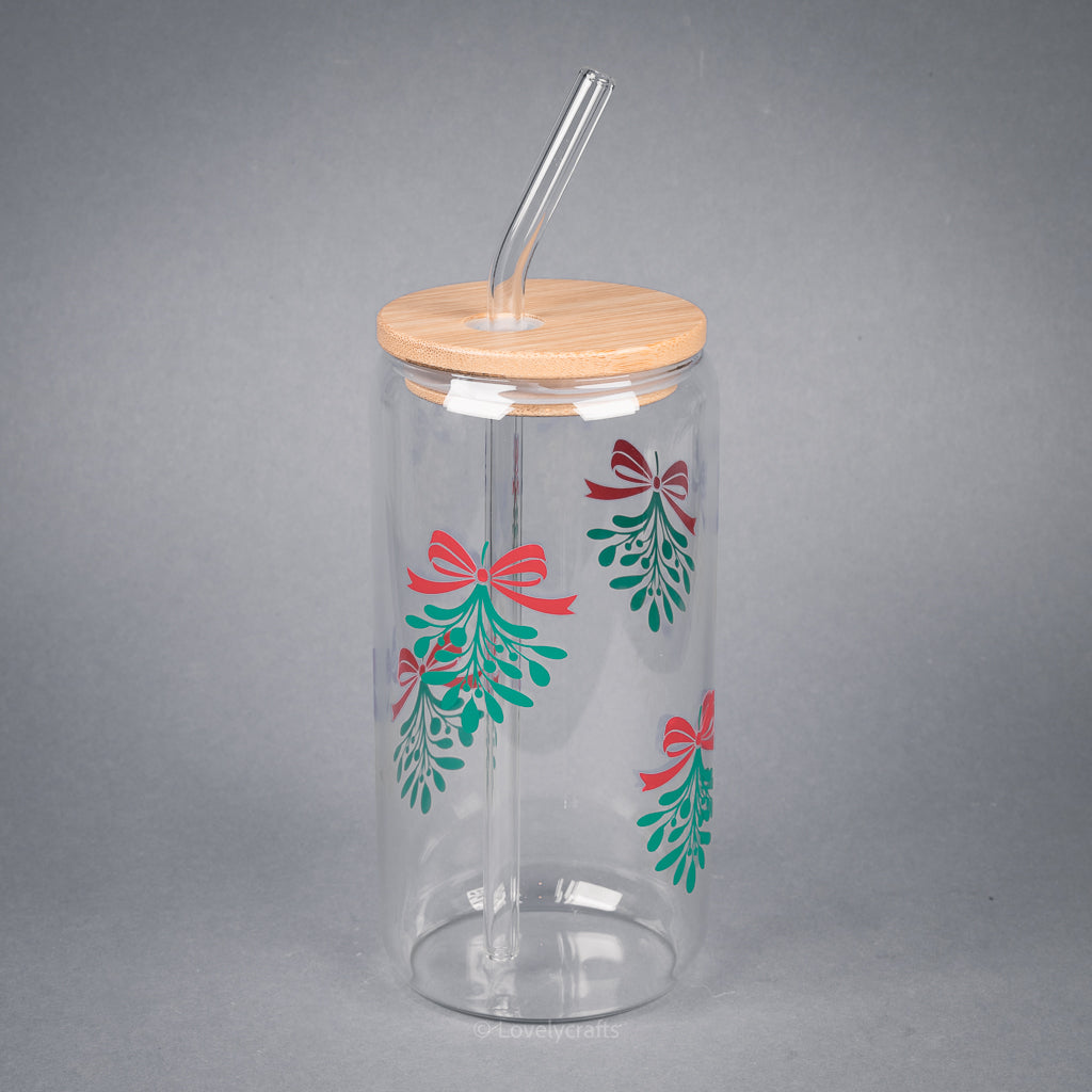 Trinkglas „Mistelzweig“ mit Deckel und Strohhalm