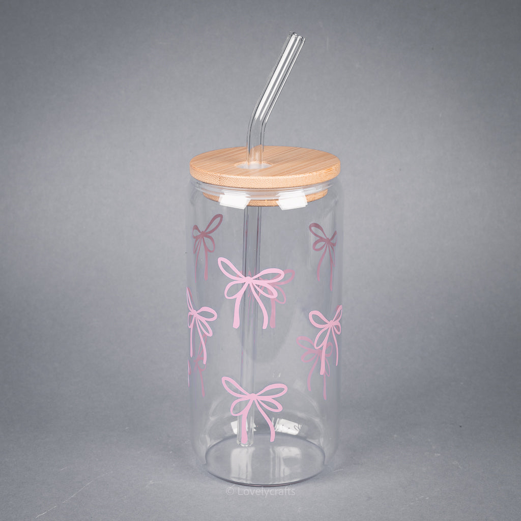 Trinkglas „Schleifen“ mit Deckel und Strohhalm 🎀